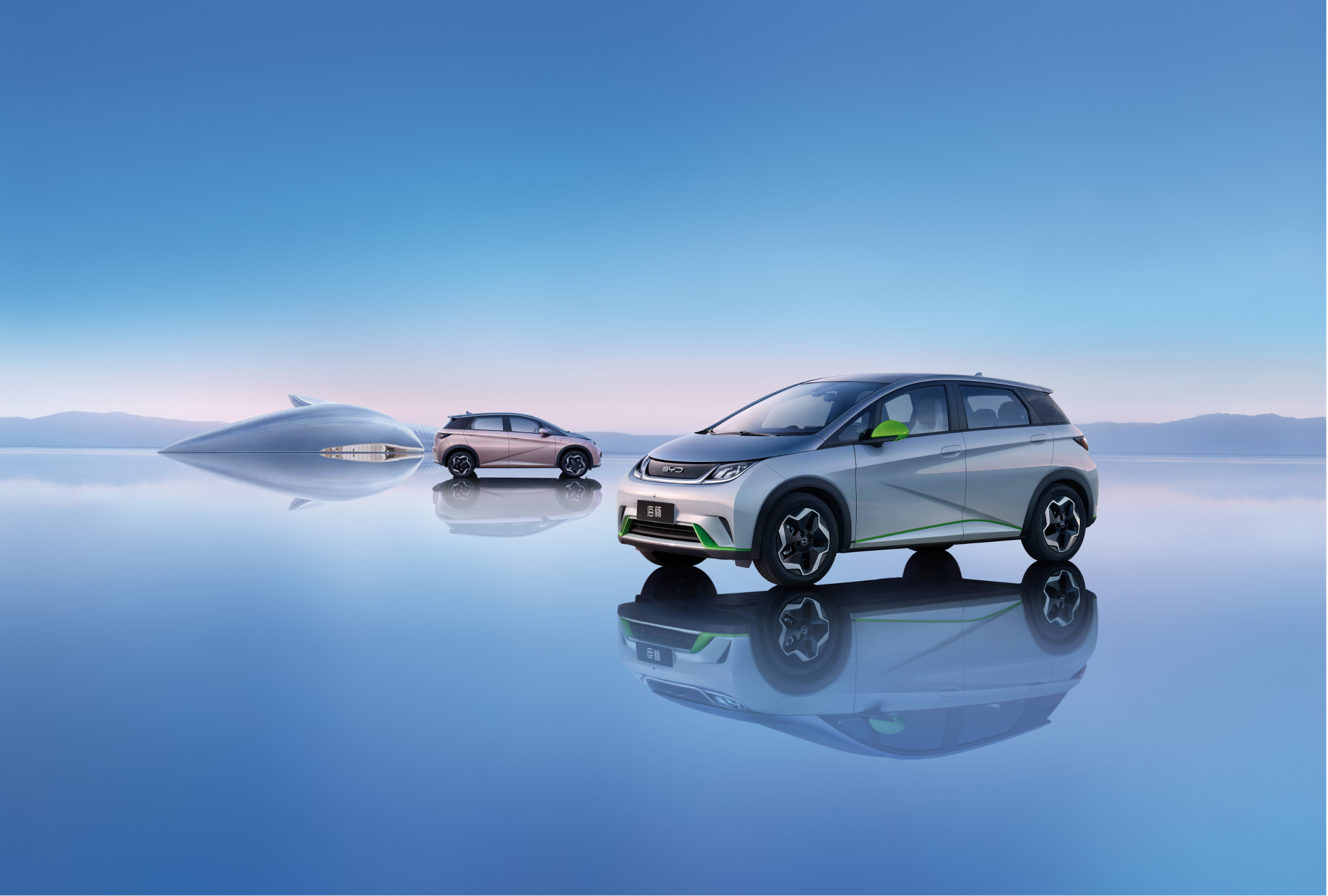 海豚是比亞迪首款采用“海洋美學”設計理念的車型,造型萌動,多種配色組合。