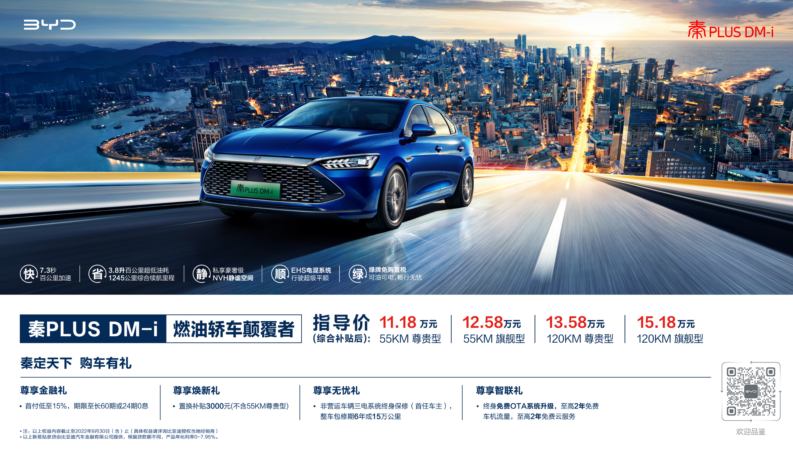 比亞迪秦PLUS DM-i搭載的比亞迪最前沿DM-i超級混動技術,搭配的驍云插混1.5L高效發動機、EHS電混系統、超級安全的刀片電池為核心組成的插混系統。